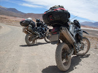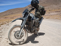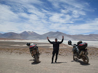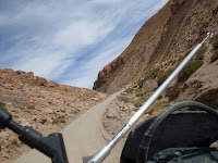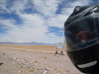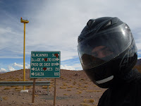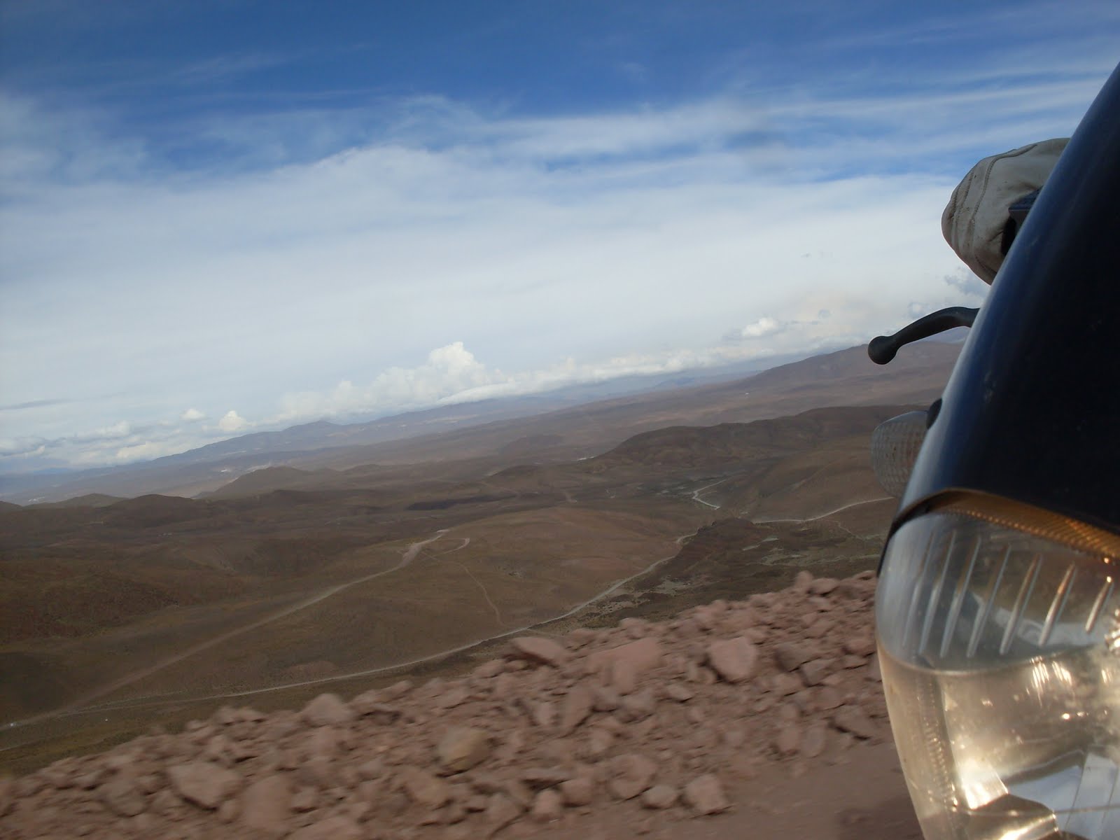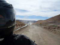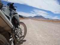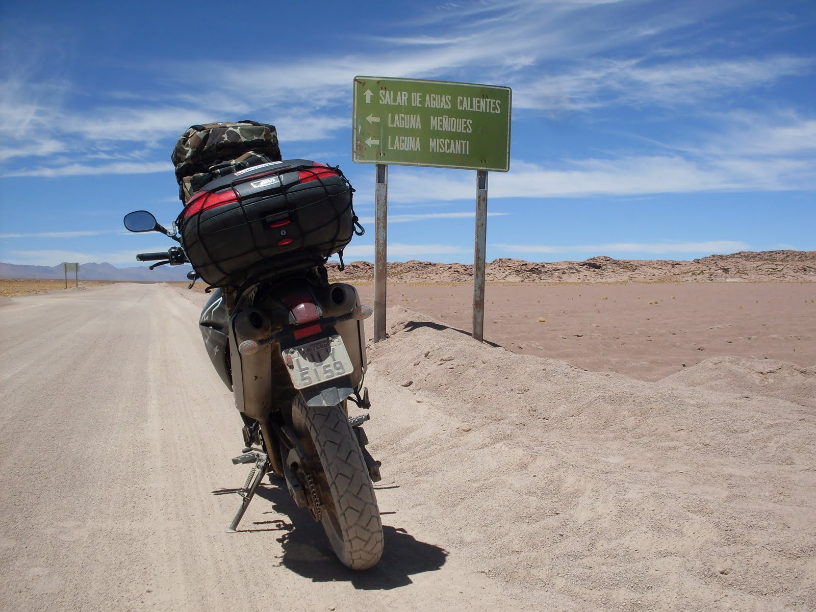 Nesse dia sai de San Pedro de Atacama em direção a Salta (AR), só que dessa vez via Paso de Sico, quase 400 kms de Ripio, é parecido como uma estrada de terra batida, só que com pedras espalhada e mta areia... uma coisa horrível, quase cai várias vezes, teve momentos que só dava para andar a 40 km/s por hora... Mas conseguir sobreviver, por várias vezes achei que a moto iria quebrar, mas realmente a xt 660 supera as expectativas, logo após esses 400 kms, peguei a estrada já a noite e com chuva e moto não batia nada... Incrível!!! DA-LHE XT660!!!